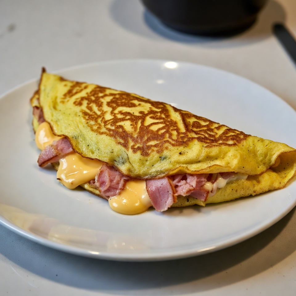 Bogactwo składników odżywczych: Jajka są źródłem białka, witamin (B12, C, D) i minerałów, takich jak żelazo. Szynka dostarcza dodatkowych wartości odżywczych, a ser wzbogaca potrawę o wapń i białko, co czyni omlet zdrowym posiłkiem.